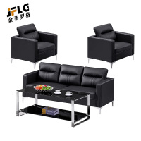 苏宁 金菲罗格 办公家具 现代简约接待会客西皮黑色沙发 1+1+3沙发+茶几组合