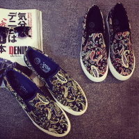 男鞋春夏潮鞋手工刺绣鞋京腔脸谱帆布鞋低帮豆豆休闲鞋社会小伙鞋