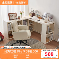 全友家居奶油风书桌架一体台式电脑桌多功能储物柜转角办公学习桌