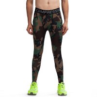 2017春秋男运动健身裤紧身裤弹力速干训练打底裤迷彩长裤JSCK2015004军绿色迷彩七天无理由退货 品质保证