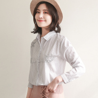 2018春装新款韩版女装竖条纹衬衫女长袖宽松学生刺绣衬衣百搭上衣