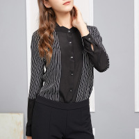 2018春夏新款欧美时尚气质真丝衬衫女式长袖黑色条纹印花立领衬衣