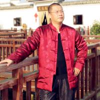 中老年男装秋冬装唐装外套中式服饰富贵团花酒红色婚礼爸爸装
