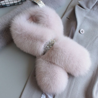 欢乐颂安迪皮草围脖韩版加厚纯色百搭冬季女士狐狸毛围巾藕粉80-100cm