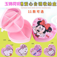 心型儿童卡通公主首饰盒化妆品收纳盒女孩项链头饰盒梳妆带镜子