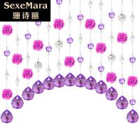 珊诗丽【特价】水晶珠帘玫瑰花水晶帘客厅餐厅隔断帘风水半截挂帘卫生间阳台玄关厕所风水帘鞋柜枚红色+浪漫紫色切面珠+紫色吊