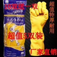 敬平南洋加厚牛筋乳胶手套劳保工作耐磨防水防滑胶皮洗碗耐用家务手套 黄色加厚 涛洋:5双 S