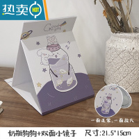 敬平化妆镜折叠可爱便携宿舍桌面可立学生ins风少女心小镜子大号台式 奶瓶狗狗便携式用镜