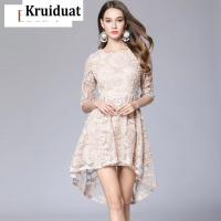 Kruidvat欧美优雅女装重工刺绣盘花圆领中袖连衣裙2017春夏M027杏色