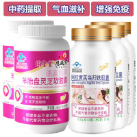 羊胎盘灵芝提取物软胶囊+阿胶黄芪当归铁胶囊男共5瓶男女性成人中老年老人气血不足改善调理贫血补身体增强免疫力双补营养保健品