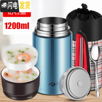 三维工匠焖烧杯壶304不锈钢保温饭盒24小时保温桶上班族学生女便当盒 钻石蓝1200+保温提包(送餐具)