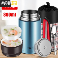 三维工匠焖烧杯壶304不锈钢保温饭盒24小时保温桶上班族学生女便当盒 钻石蓝800+保温提包(送餐具)