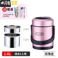 三维工匠不锈钢真空超长保温饭盒桶多层12/24小时带饭上班家用1人便携小型 1.6玫瑰金(送餐具)