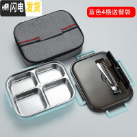 三维工匠304不锈钢保温饭盒 学生分隔型上班族分格食堂商务餐盒套装便当盒 蓝色4格送勺筷保温袋