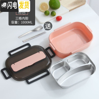 三维工匠304不锈钢保温饭盒上班族便当盒便携1人减脂餐饭盒分格型健身餐盒 大号粉色[3格+送餐具+袋]