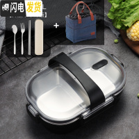 三维工匠日式餐盒304不锈钢便当盒简约分格密封保温饭盒1人学生上班族饭盒 黑色[级不串味版]+袋+餐具+提带