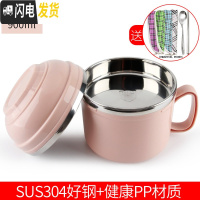 三维工匠304不锈钢保温饭盒儿童便当盒学生餐盒成人快餐杯带盖碗饭缸 北欧粉900+餐具