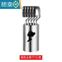 敬平304不锈钢水果叉套装蛋糕吃水果签家用小叉子儿童果叉插创意可爱 304银色收纳筒+5支银色甜品勺