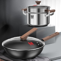 康巴赫 LPB-T03S匠心无涂层深氮三件套炒锅汤锅蒸屉三件套