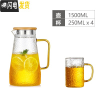 三维工匠大容量凉水壶锤纹玻璃冷水壶可高温家用玻璃水壶果汁扎壶套装 锥形壶1500+4个沁饮杯(250)