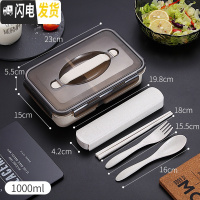 三维工匠304不锈钢保温饭盒上班族便当盒便携1人减脂餐饭盒分格型健身餐盒 北欧米[1000+餐具]
