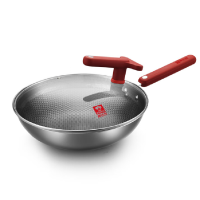 康巴赫六代红点双蜂窝不粘锅家用不锈钢炒锅电磁炉燃气灶专用炒菜32cm