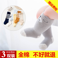 啄木鸟堆堆袜子女士中筒袜夏季薄款纯色棉袜无骨月子袜黑白色长筒袜夏天