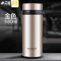三维工匠保温杯男士大容量水杯女不锈钢便携商务定制学生泡茶杯子大号 金色680[级不锈钢内盖]