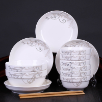 18件盘子菜盘家用陶瓷碗 碗碟套装骨瓷面碗汤碗中式创意课微波