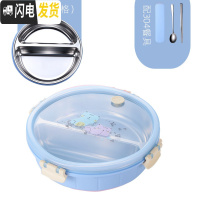 三维工匠304不锈钢分格饭盒圆形分隔学生成人上班族分餐盘分层保温便当盒 蓝色3格[无餐具]