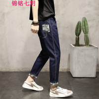 锦铭七玥男士休闲七分牛仔裤2018时尚百搭迷彩休闲修身韩版潮流水洗七分裤