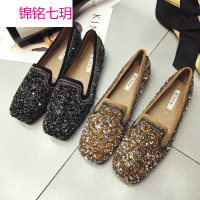 锦铭七玥46时尚亮片方头平跟单鞋女春季2018新款韩版学生平底鞋软底孕妇鞋