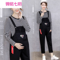 锦铭七玥孕妇背带裤春秋018时尚新两件套外穿T恤背带裤长裤套装