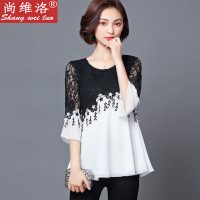 喇叭袖雪纺小衫2018春夏装新款韩版大码女装显瘦蕾丝衫