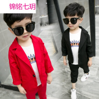 锦铭七玥韩版童装2017时尚男童套装儿童西装外套英伦礼服纯棉厂家一件代发