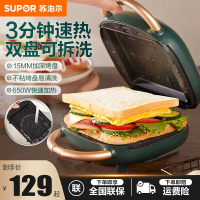 苏泊尔(SUPOR)三明治机早餐机双面加热家用面包早餐机吐司机 煎烤机迷你上下盘可拆洗双面压烤 SJ1413C808L