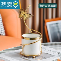 敬平轻奢水果叉收纳罐套装北欧家用甜品蛋糕叉子创意不锈钢网红水果签 蝴蝶果叉罐-白色