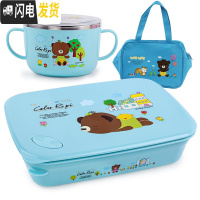三维工匠小学生饭盒便当盒分格304不锈钢儿童餐盘防烫餐盒保温带盖微波炉 四格一体蓝卡通+保温袋+餐具