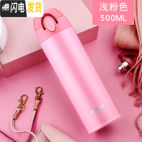三维工匠保温杯轻量304不锈钢男商务茶杯子真空女学生户外便携水杯 浅粉色