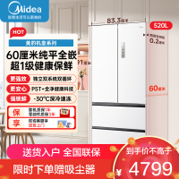 美的(Midea)多门冰箱M60系列520小机皇法式大容量冰箱超薄嵌入除菌净味底部散热 BCD-520WUFPZM海贝白