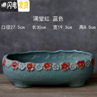 三维工匠 长条大口径多肉花盆陶瓷特大号阳台长方形花盆 满堂红蓝色 大花盆容器