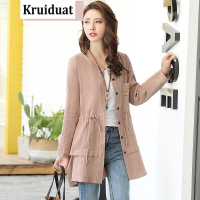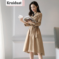 奈琴尔2017秋季新款韩版休闲风衣女秋冬中长款秋装外套 卡其色 L