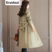 奈琴尔2017韩版女装秋季新款修身休闲大码长款风衣 卡其色 XL