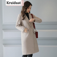 奈琴尔2017秋装新款 韩版大衣翻领收腰中长款外套现货女式毛呢外套 卡其色 M