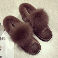 班尔(BANER)厚绒保暖防滑毛毛鞋豆豆鞋冬季新款圆头套脚平底低帮鞋孕妇鞋女鞋 卡其色 35