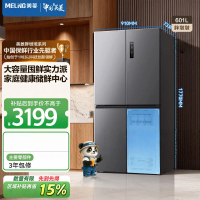 美菱收纳师601L十字门冰箱净味抗菌双变频超大容量一级能效家用节能风冷无霜新BCD-601WSP9CX