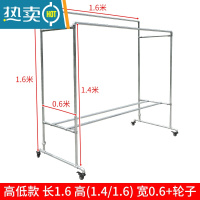 敬平镀锌钢管晾衣架落地户外室外双杆水管晒被子架家用阳台挂衣晒衣架 高低款带轮子 长1.6高(1.4/1.6)宽0.6+送