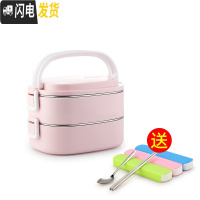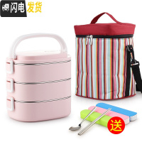 三维工匠学生304不锈钢保温饭盒分隔型上班族双层保温桶便携便当盒小型1人 粉色3层(顶层分2格)(含袋)