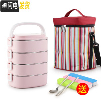 三维工匠学生304不锈钢保温饭盒分隔型上班族双层保温桶便携便当盒小型1人 粉色4层(顶层分2格)(含袋)