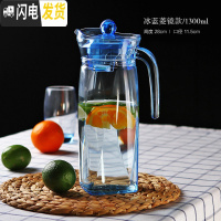 三维工匠大容量玻璃壶冷水壶扎壶水壶八角壶家用凉水壶果汁壶饮料壶 冰蓝菱镜鸭嘴壶1300